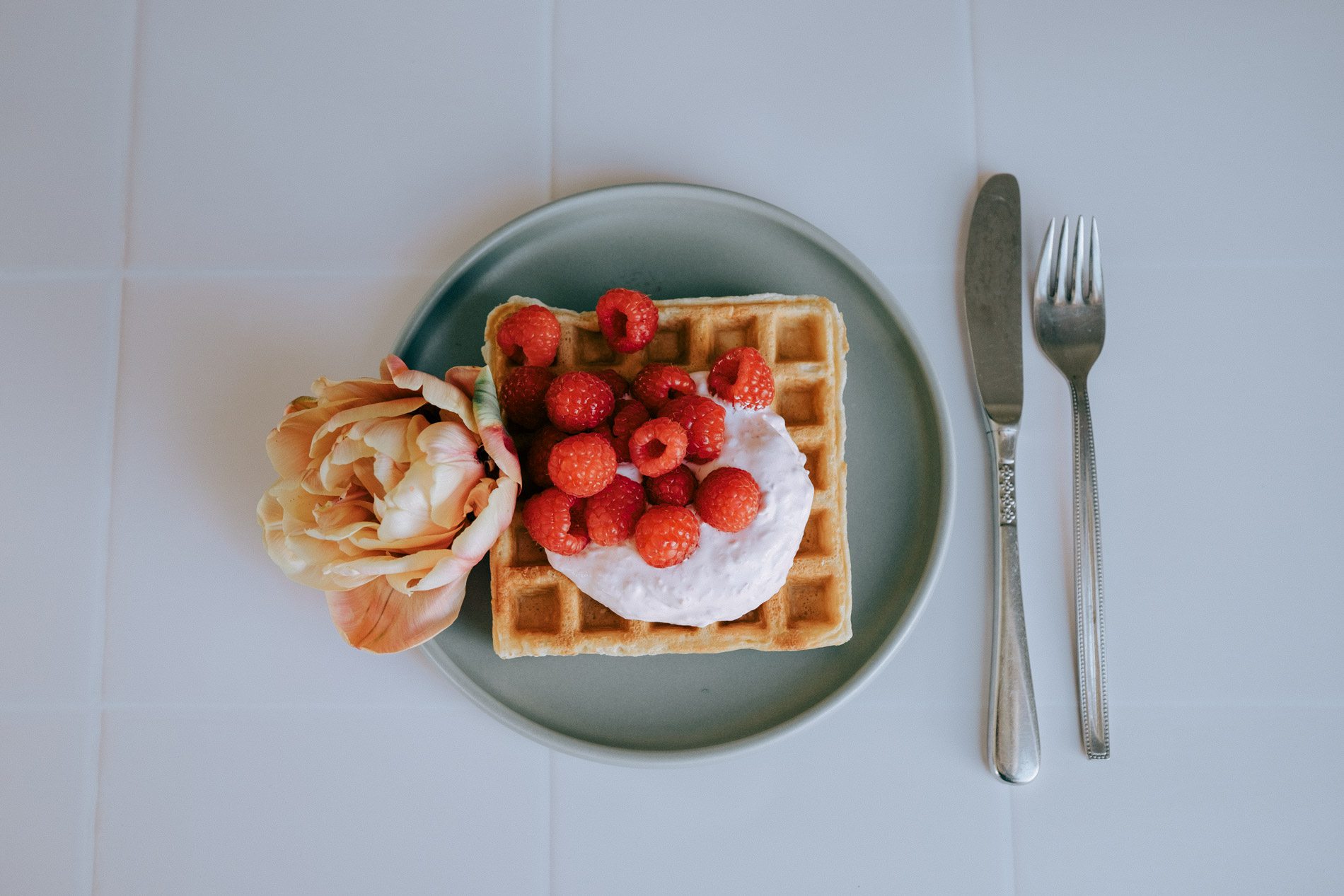 coconut lime waffles & raspberries